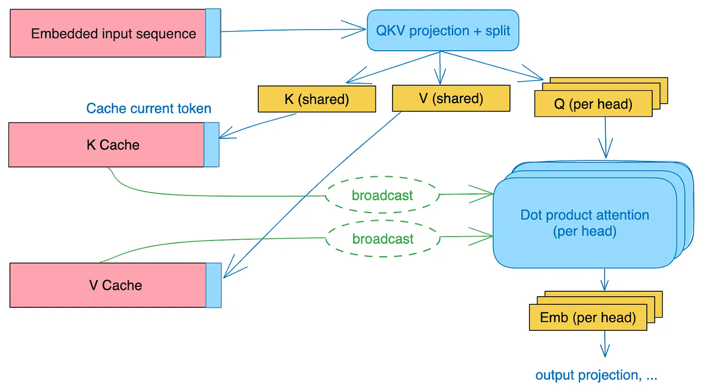 Note that literature released after this blog post refers to Multi-Query Attention with multiple KV heads as “Group-Query Attention”.