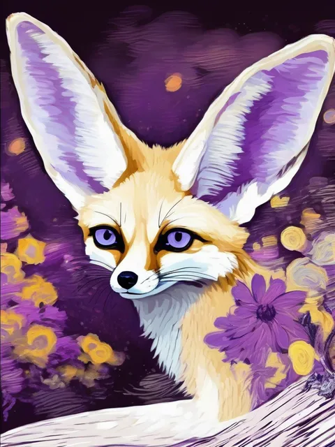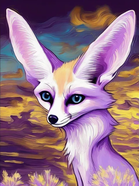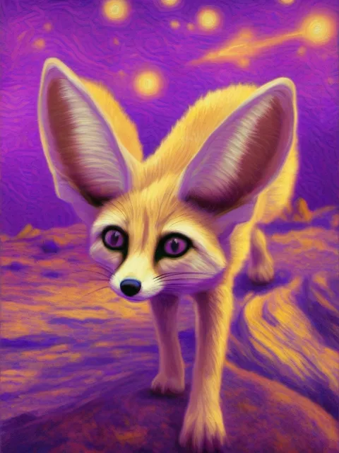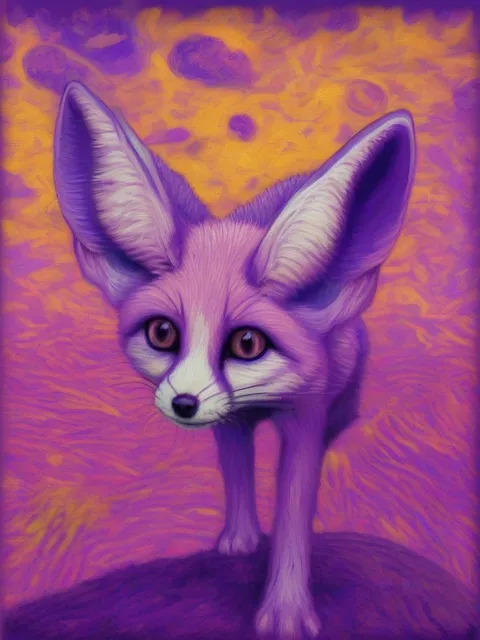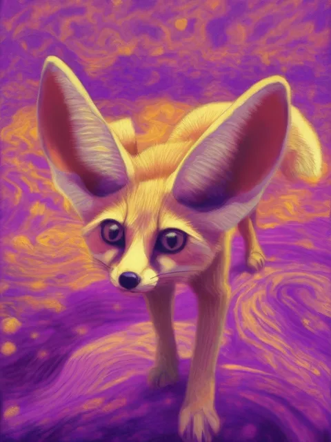 prompt="Fennec Fox Van Gogh, cartoon, purple, vibrant painting, fantasy concept",