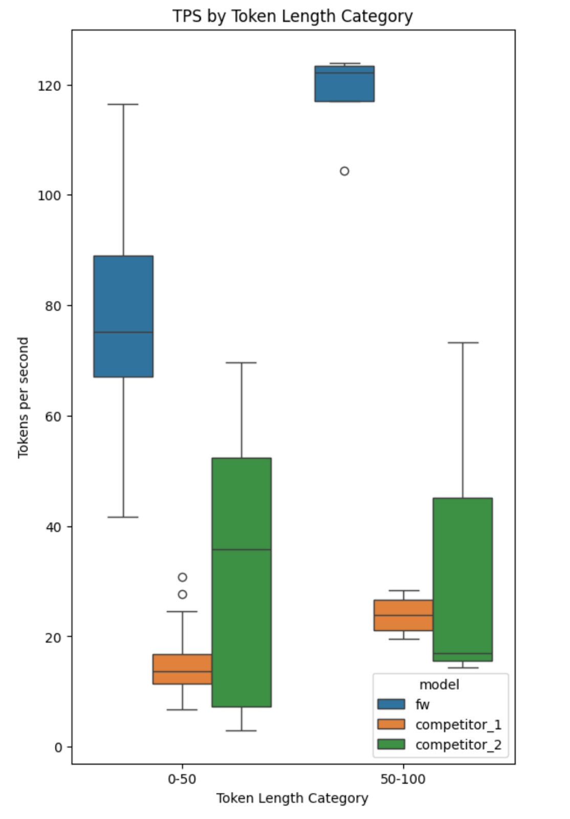 Fireworks is committed to providing the best platform for Generative AI product innovation and the best experience for structured output. Compared to other providers, we’re excited to offer JSON mode with blazing fast speed for low-latency cases. In our benchmarks, our JSON mode provided 120 tokens/sec while the average “JSON mode” from competing platforms generated 30 tokens/sec.